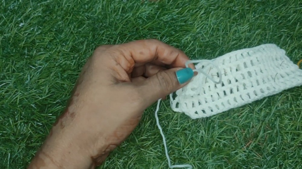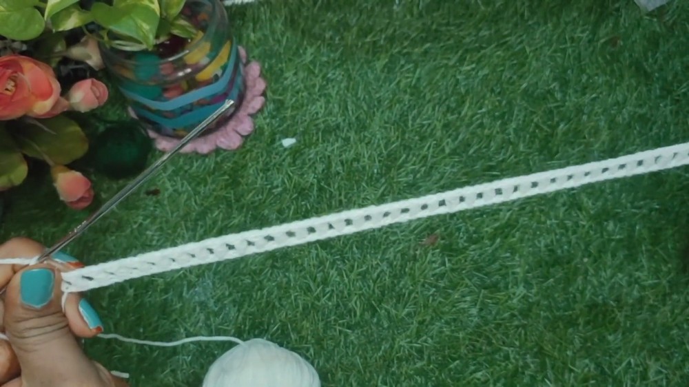 Work rows of single crochet stitches back and forth until you achieve the desired width. Adjust the number of rows according to how large or small you want the bow to be.
