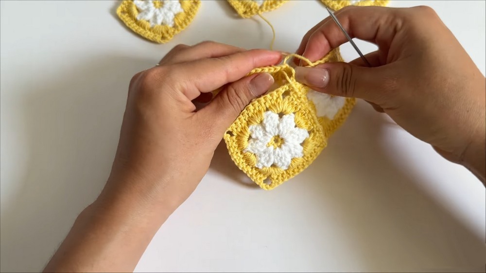 Joining these pieces involves precise stitching with a tapestry needle, ensuring a clean and seamless assembly by working into outer loops for a polished appearance.
