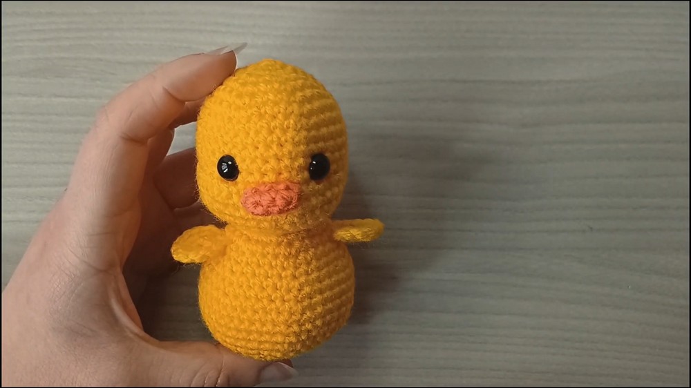 Rounds alternate between increases and plain single crochets to shape the chick’s head, body, and adorable features like its wings and beak.