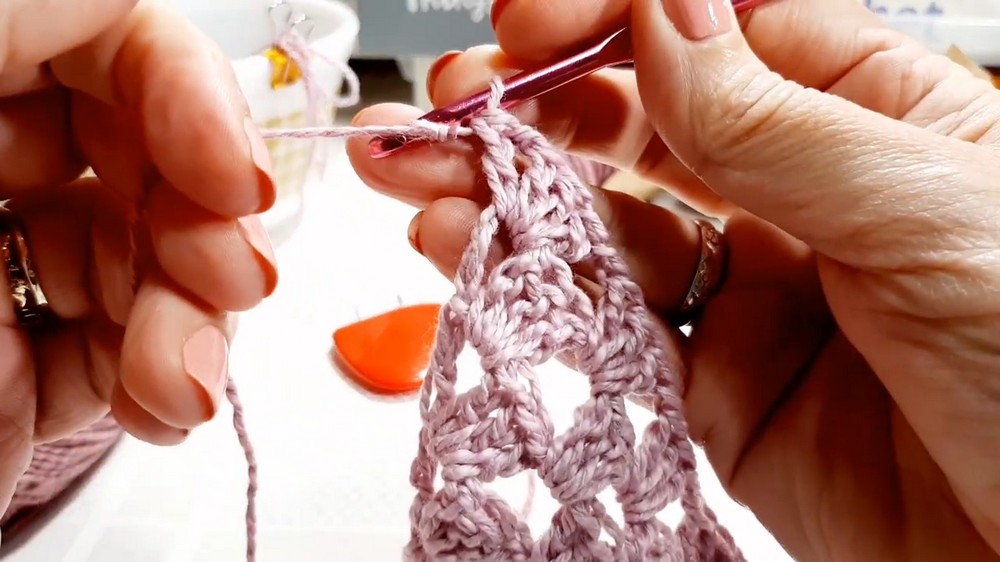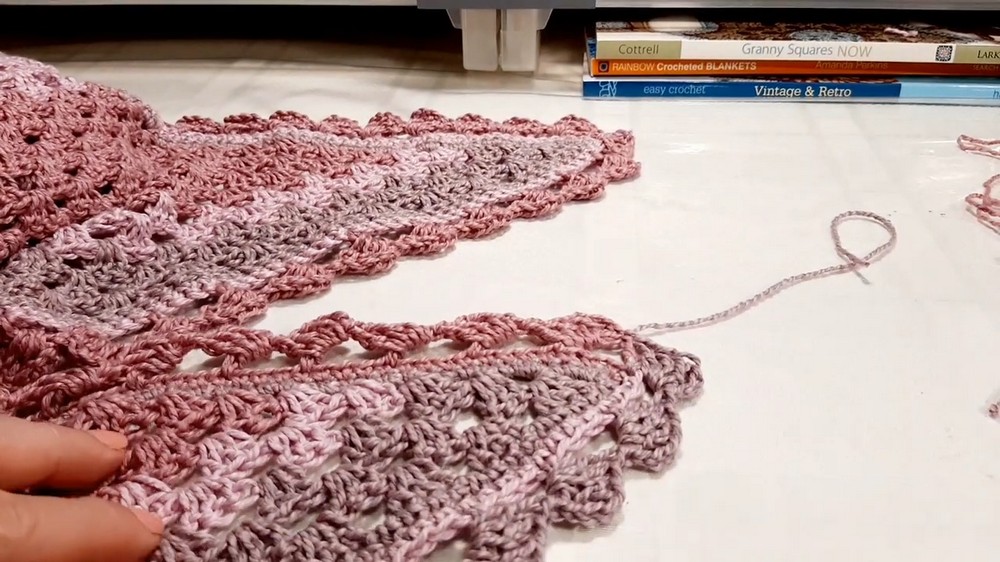 - Border Addition: While she chose the double blocks edging, you're encouraged to explore other patterns to personalize your shawl further.