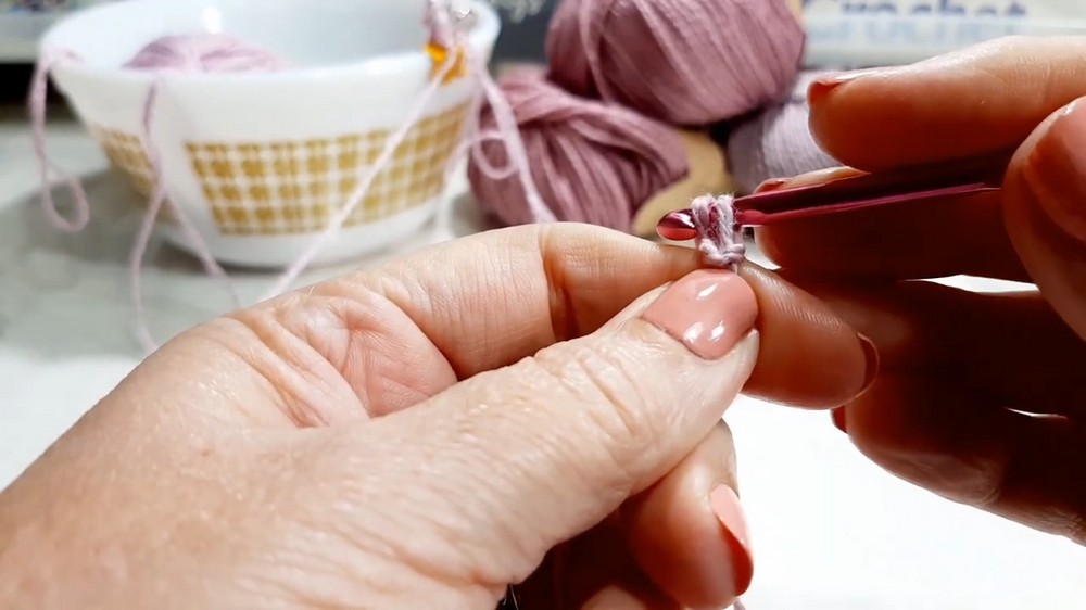 - Magic Knot for Yarn Changes: She uses a magic knot technique to eliminate loose ends, making the project cleaner and reducing finishing time.