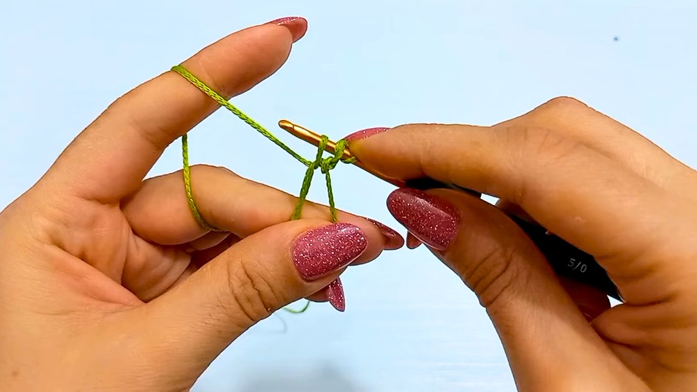 - Begin with a magic ring, forming an "X" shape with the yarn on your fingers.
