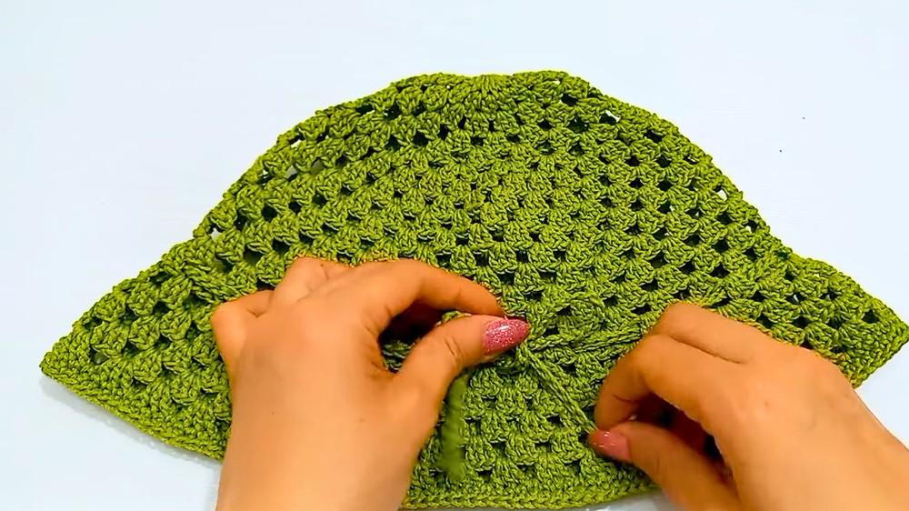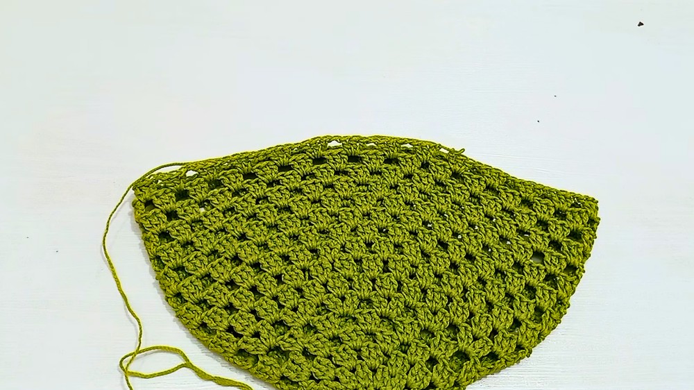 - Round 1 of the Brim: Increase stitches by working two groups of three double crochets into every alternate chain space.