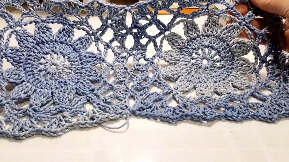 Intermediate, due to maintaining evenly spaced increases while creating the mesh and decorative edging. However, the tutor’s instructions are detailed, with clear visual guidance.