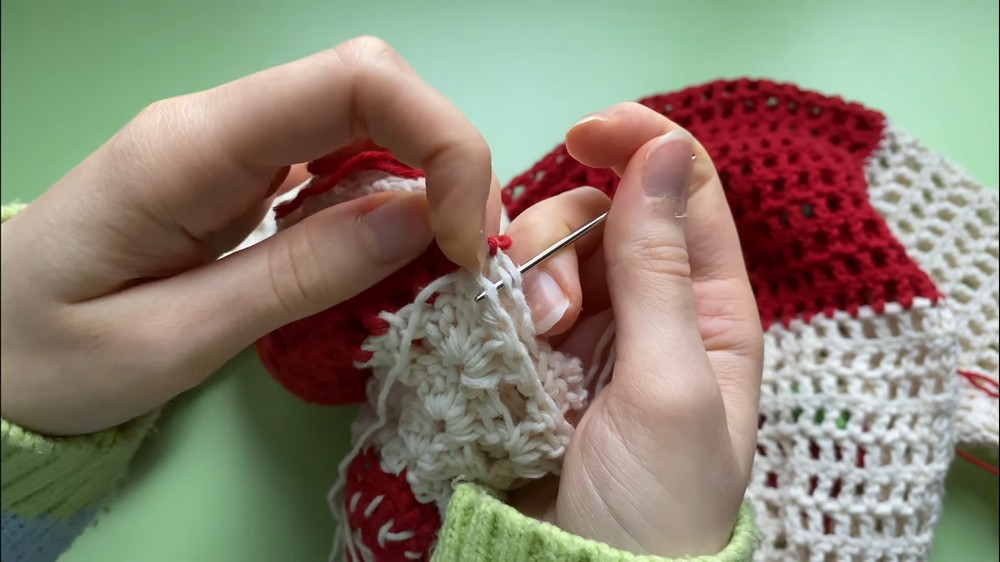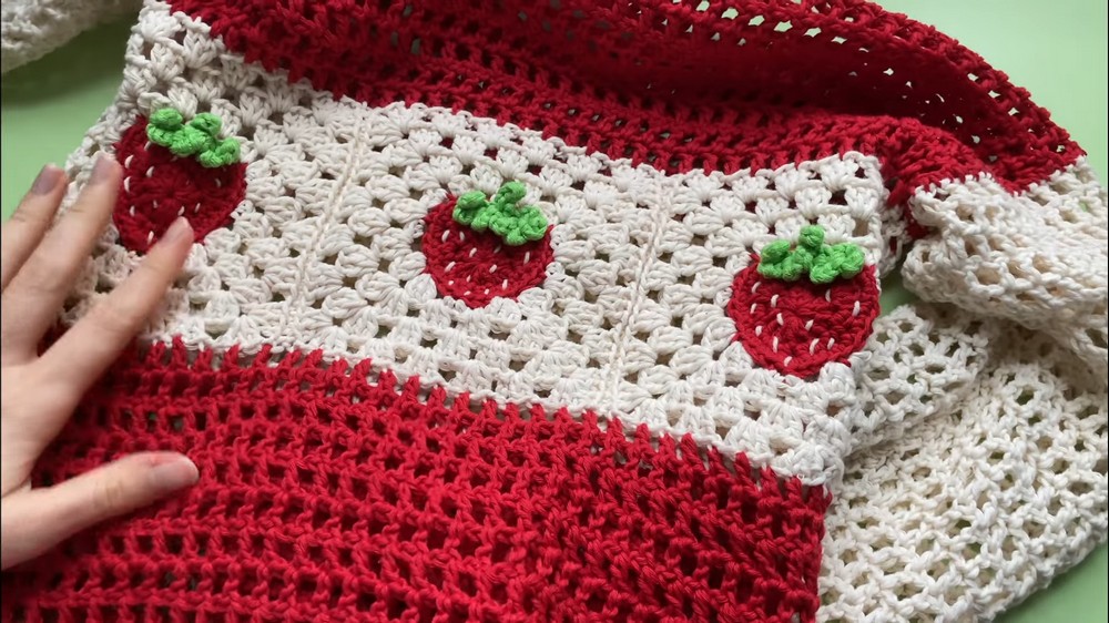 To start, you’ll need to crochet multiple granny squares, stitching them together to form the body, sleeves, and back.