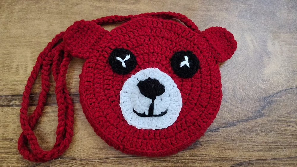 - Special features: The bag features a cute bear face with ears, eyes, and a nose. The strap is made with a three-ply yarn, making it strong.