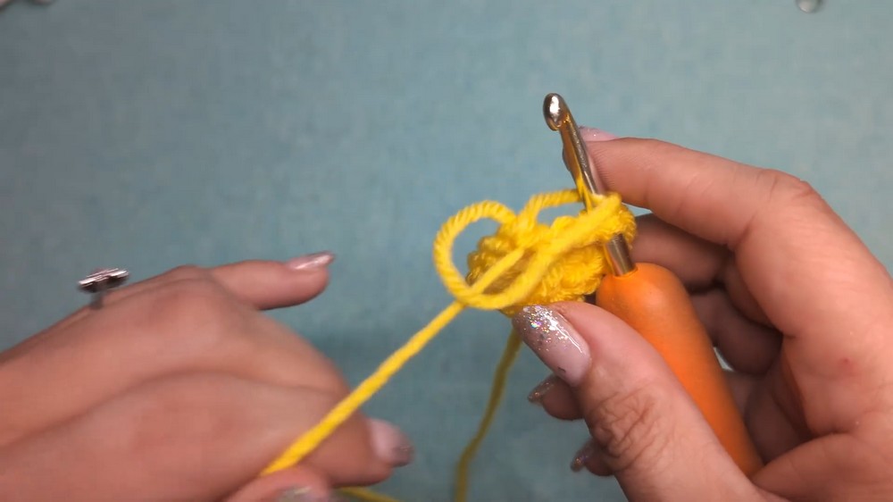 - Yarn Over and Pull Through: Once you have 6 loops, yarn over and pull through all loops. Chain 1 to secure.