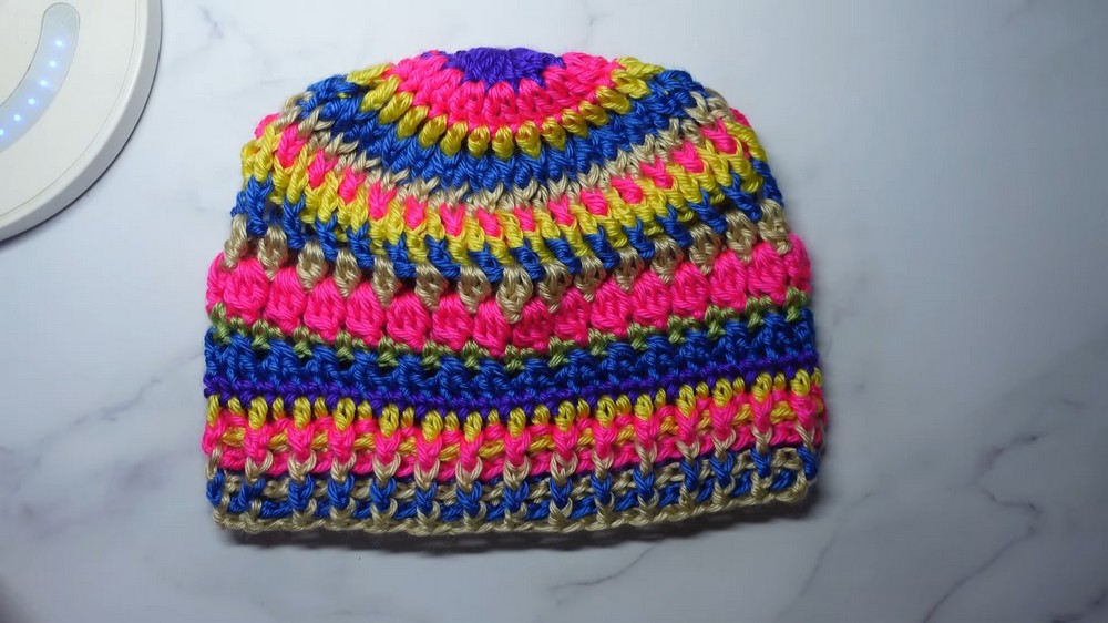 As the foundation expands, you gradually add rows of increasing stitches, seamlessly cycling through scrap colors to lend the hat a dynamic, multicolored charm. Furthermore, the element of mystery lies in the absence of rigid planning, which encourages creativity in each round. With every color change, a breath of freshness is introduced, making the process both engaging and delightfully unpredictable.