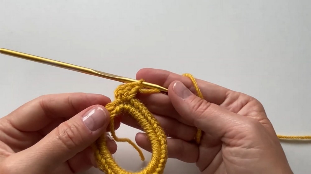 • When you complete the round, slip stitch into the top of the initial chain-3 stitch to close the row neatly.