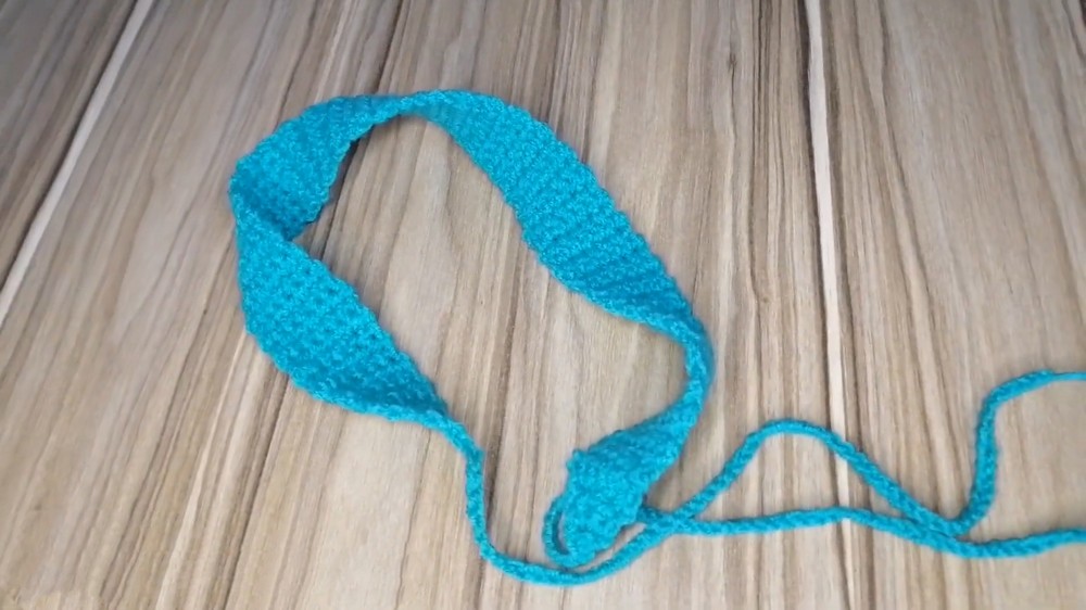 Repeat this pattern across both ends of the headband. Finally, form the ties by chaining 60 on one end and repeating for the other side after attaching the yarn again.