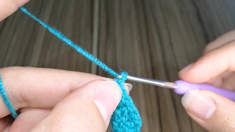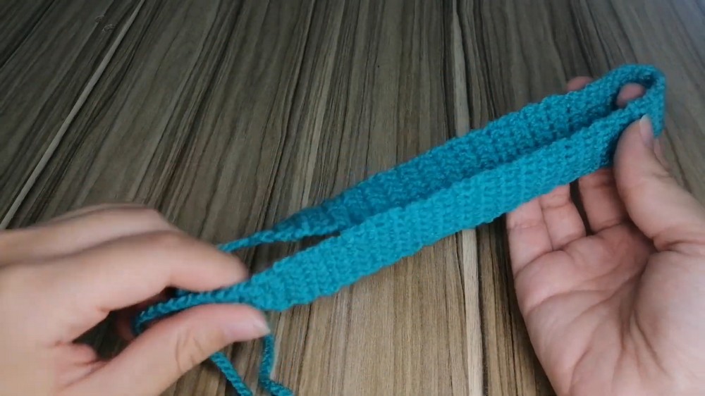 At the end of the row, chain one, turn your work, and continue working single crochets for each following row. Repeat this process until the headband reaches your desired length.
