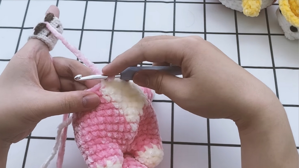 - The video guides you on increasing rounds as the head expands. Follow along according to the pattern provided.