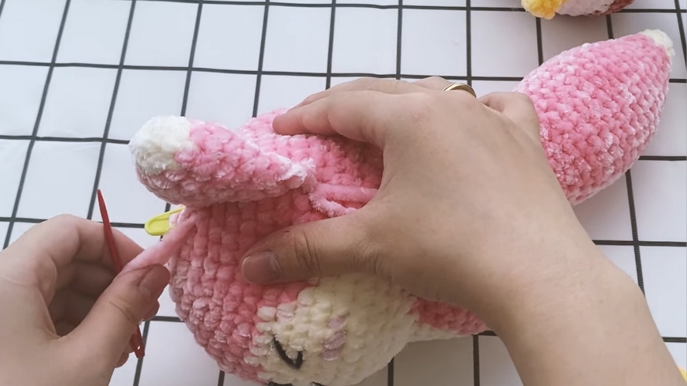 - Mark the spots carefully to ensure symmetry and stitch the ears in place securely.